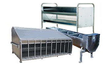 y jaulas de transporte, tolvas y tanques de almacenamiento de leche,